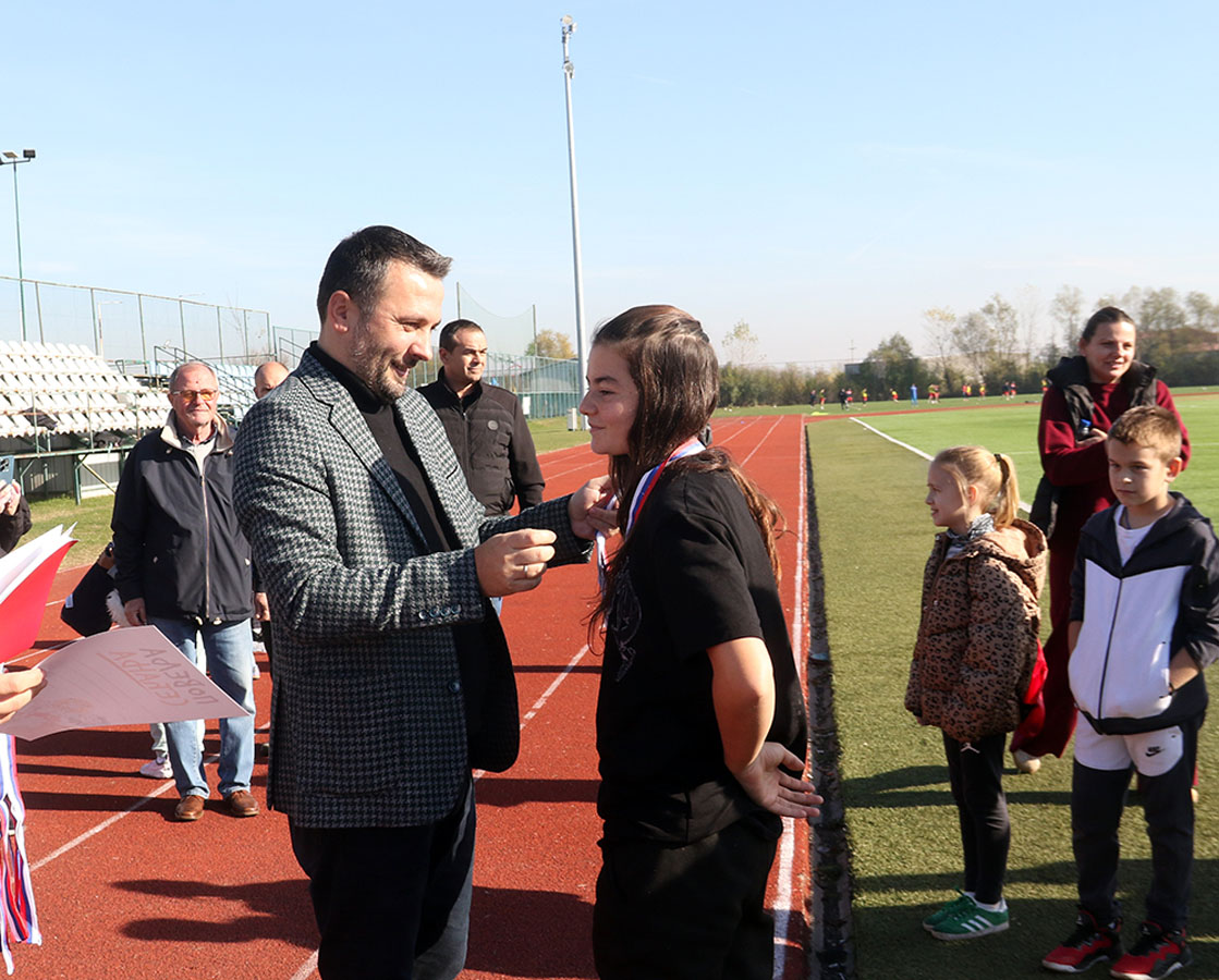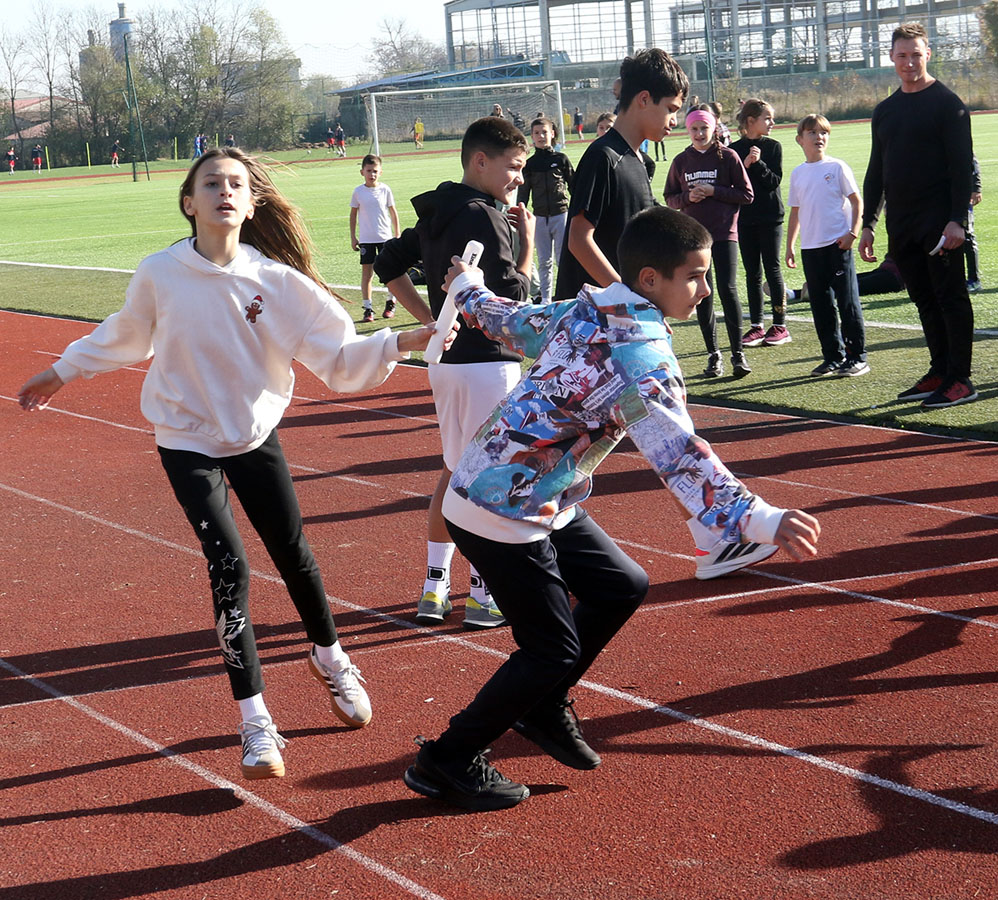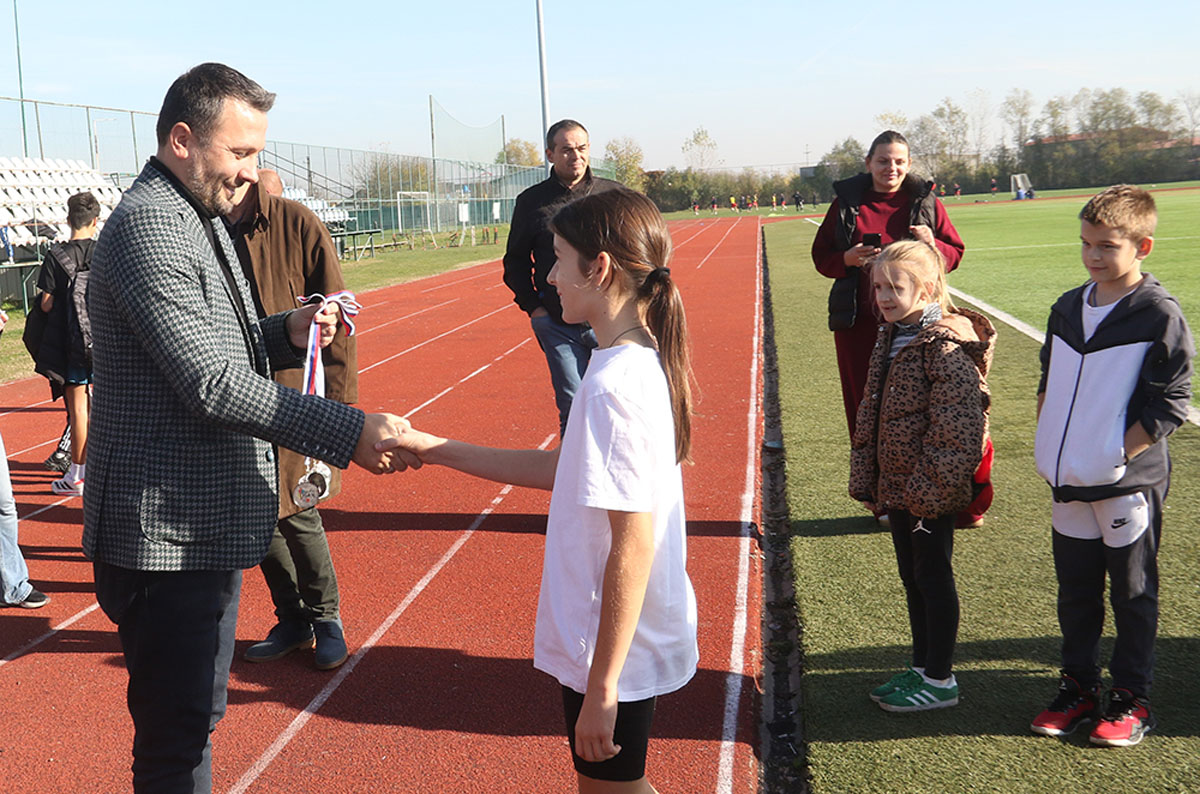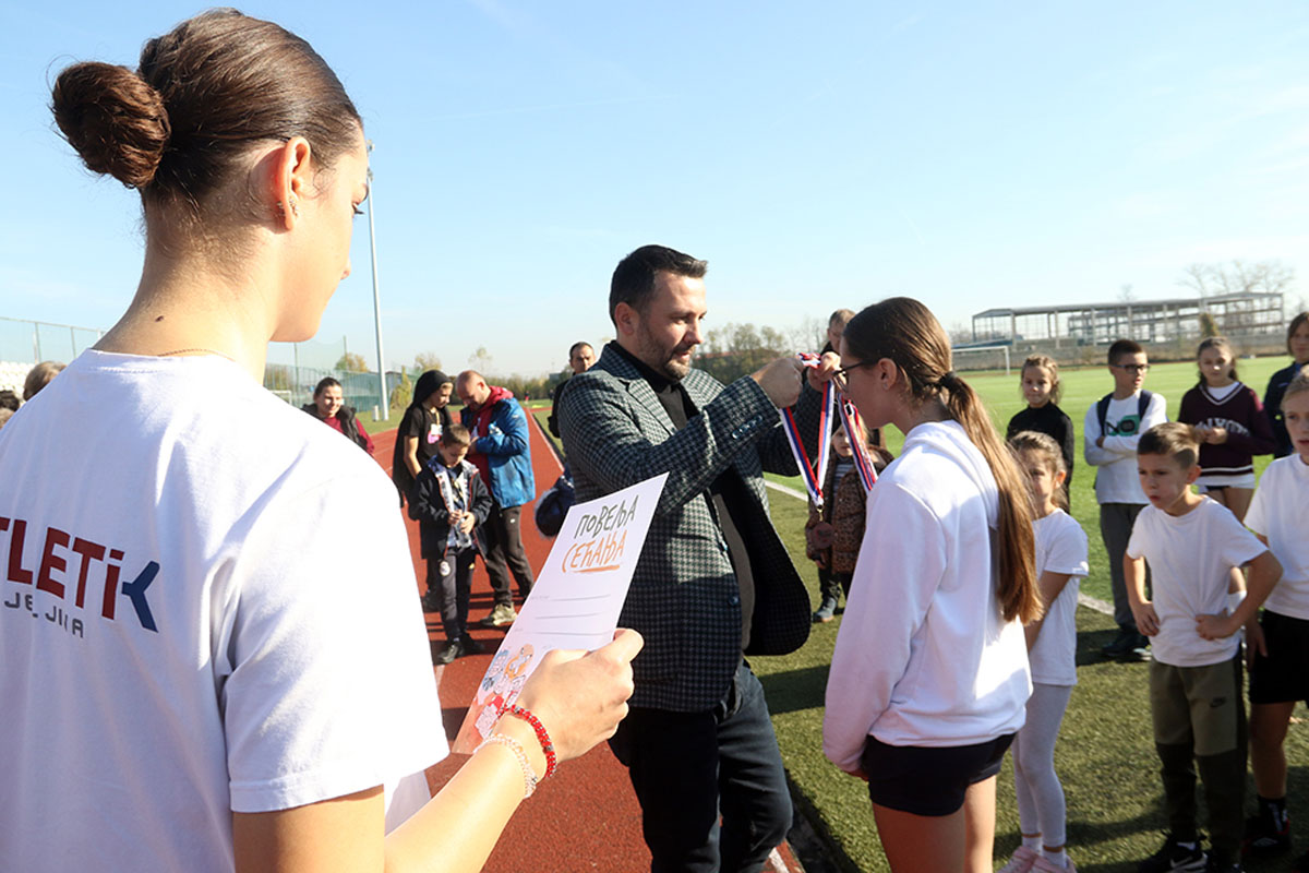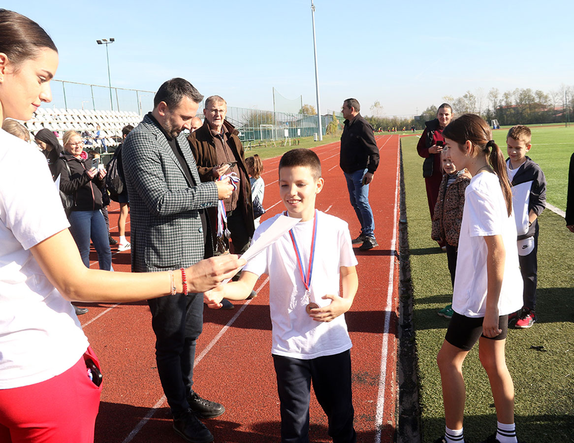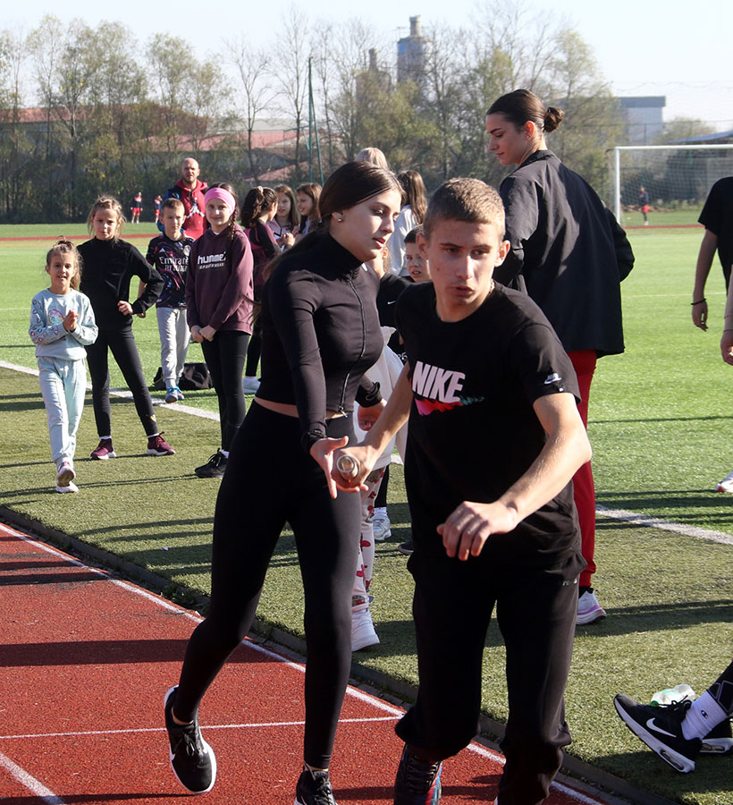 По сунчаном и топлом времену, на тартан стазу изашло је седам најбољи штафета Бијељине. Деца се нису штедела, а награда је стигла пре свега са трибина – од родитеља и наставника. Већ у првој измени такмичари ОШ „Јован Дучић“ стекли су предност коју нису испуштали до циља. Њихова осморка, узраст од првог до завршног разреда, заслужено је освојили златну медаљу. Сребро је припало штефети ОШ „Ћирило и Методије“-Главичице, а бронза ОШ „Стеван Немања“-Драгаљевац. Медаље и Повеље сећања нашег партнера Издавачке куће Клет уручио је Радиша Петровић, специјални саветник градоначелника Љубише Петровића. – „Из годину у годину пројекат ‘Бијељини на дар’ квалитетно напредује. И ово такмичење то доказује.Три дана овај град је сведок најлепшег програма – уметничког, образовног и, ево, спортског, а све ради свеколиког напретка наше деце и младих“, истакао је Радиша Петровић, човек који је и извршни директор пројекта „Бијељини на дар“. Истог мишљења су и његови први сарадници – Горан Гашић и Дејан Марјановић.